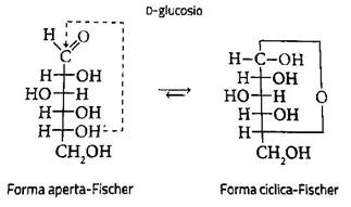 La formazione delle strutture piranosiche,caratterizzate,cioè,da un anello esa-atomico (cioè costituito da sei atomi) costituito da cinque atomi di carbonio e da uno di ossigeno,è resa possibile dalla formazione di un legame del gruppo ossidrile dell'atomo di carbonio 5,con l'atomo del carbonio aldeidico(in questo caso posizionato in posizione 1)
