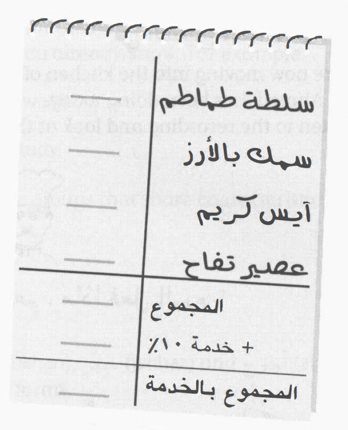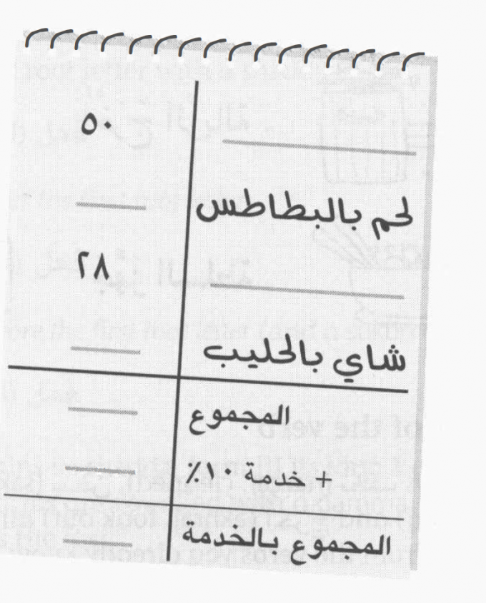 Заполните прилагающийся ниже счет. Попросите у официанта блюда, указанные в счете, по предложенной модели.