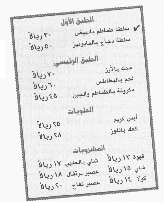 Посмотрите на меню, затем послушайте разговор с официантом. Какие блюда заказал посетитель?