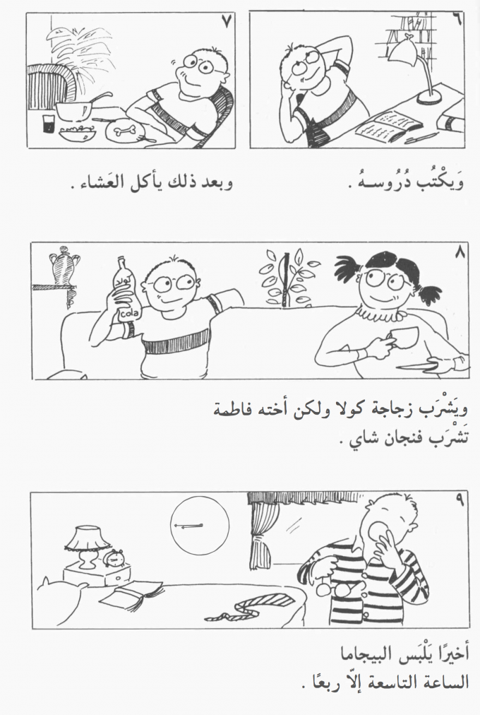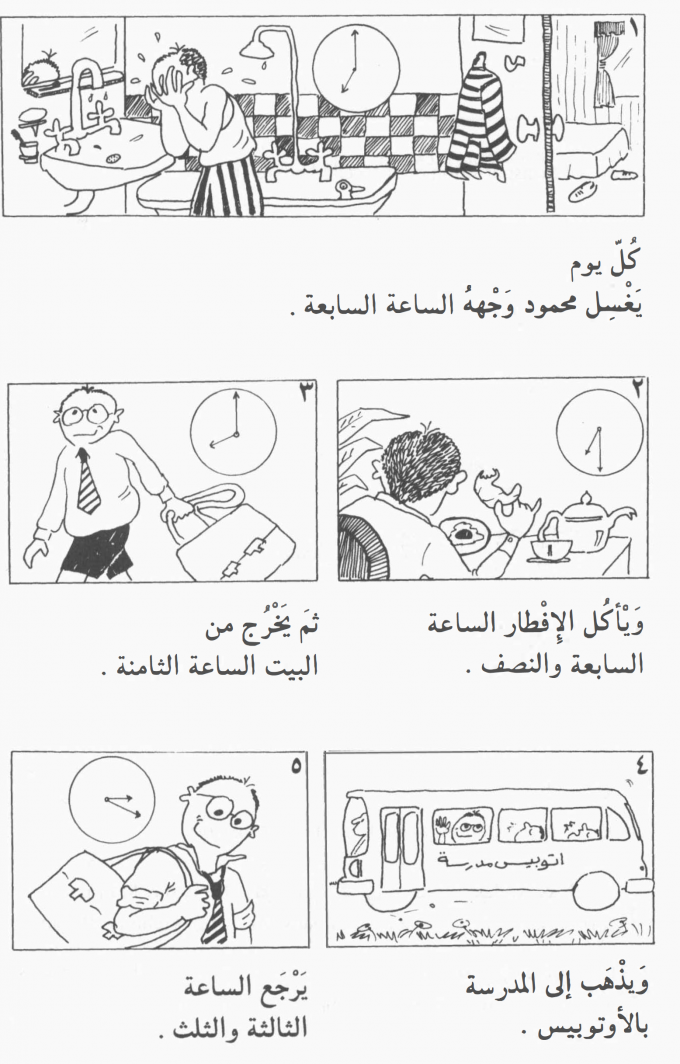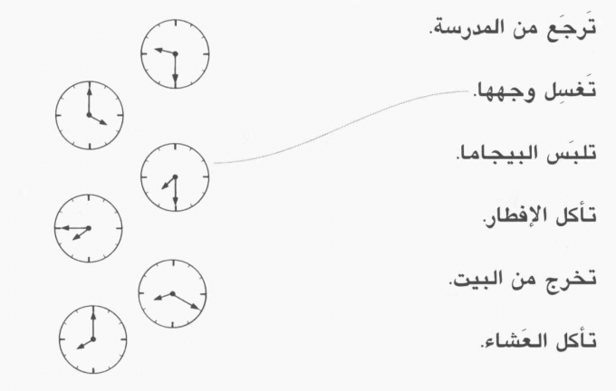 Послушайте, как проводит свой день Фатима. Найдите соответствия и напишите рассказ о дне Фатимы.
