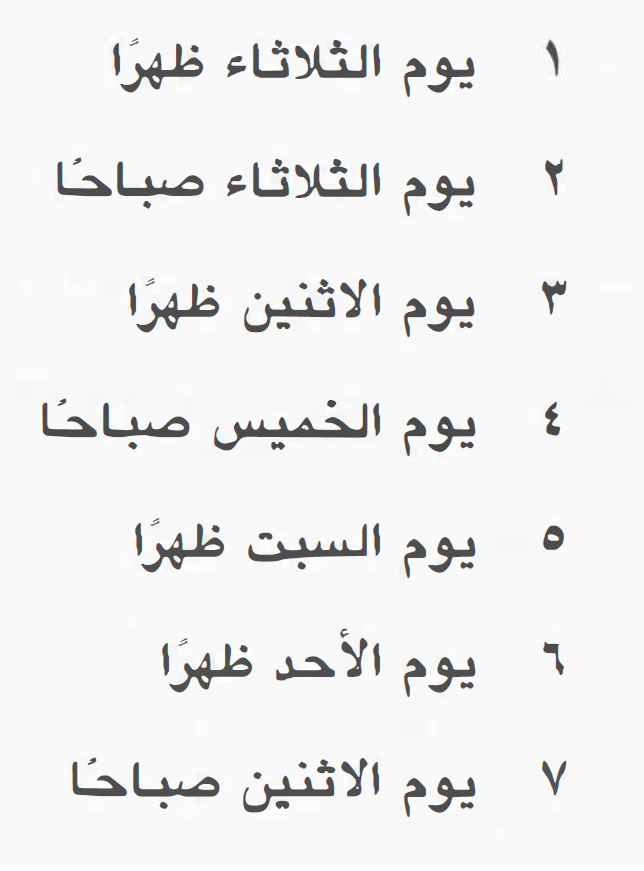 Послушайте о расписании Хишама. Перескажите то, что услышали.