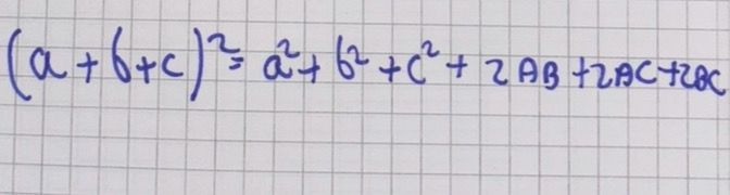 Se a,b e c sono monomi (o polinomi) il quadrato del trinomio a+b+c è uguale alla somma dei quadrati dei tre termini e dei doppi prodotti di ciascuno di essi.