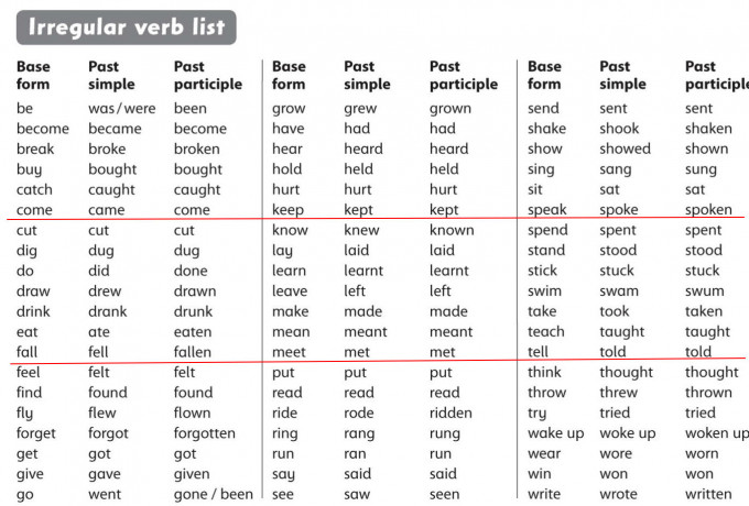 2. Revise the irregular verbs