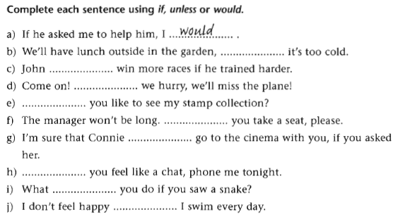 (If I go to Brazil, I'll dance in a carnival. If I go to London, I'll visit the BritishMuseum)