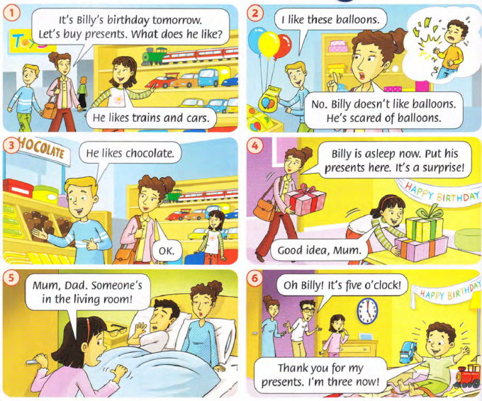 1) Whose birthday is it? 2) What does Billy like?...