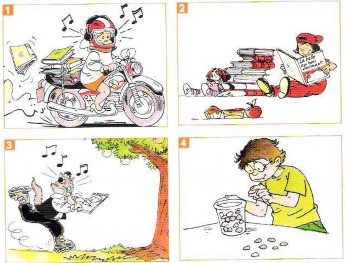 e.g. Mamie: J'aime faire de la moto! J'aime lire!