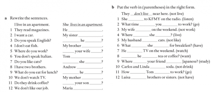 b) Listen. Say the sentences in the third person singular