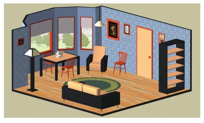W: Oh, I see. Yes, there’s a sofa and a TV … yes, it is a living room.