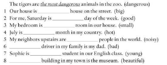 Complete the sentences with superlatives