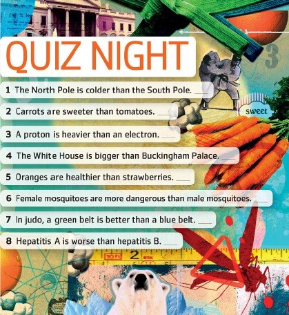 8. What quizzes are popular in your country? Look at the sentences from Quiz Night and say if they are True or False.