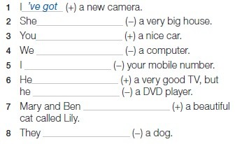 4. Look again at the texts about Alan and Mary. Find all the examples of ’ve got (= have got), ’s got (= has got), haven’t got and hasn’t got.