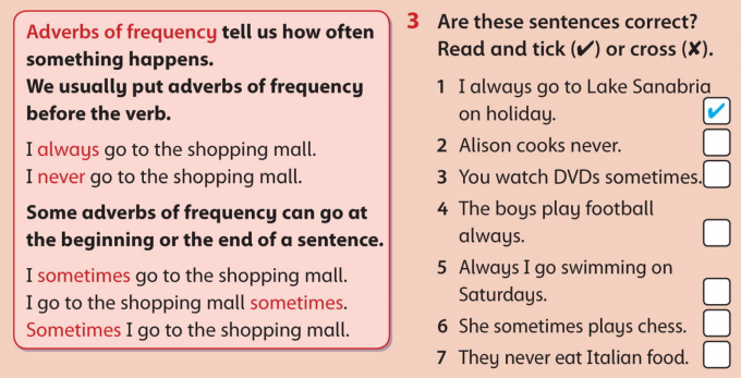 b) Make 3 sentences about you with ALWAYS, SOMETIMES and NEVER.