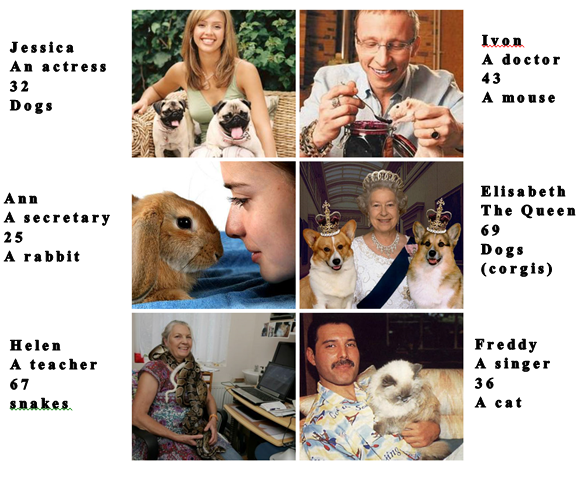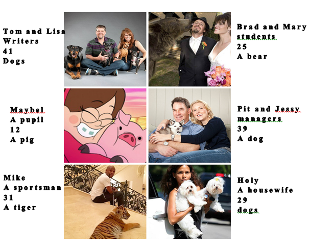 What's his pet? - His pet is a tiger. What is their pet? - Their pet is a bear.