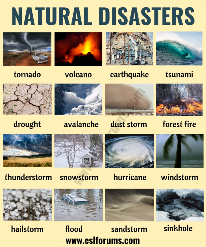 1. Which natural disasters do you know? Describe at least one natural disaster in a few phrases, using the following plan: