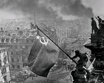 Il 16 aprile 1945 l'Armata Rossa sferrò la sua ultima offensiva generale, con obiettivo Berlino; l'attacco fu lanciato in gran fretta sotto la pressione di Stalin, che temeva di essere preceduto dagli Alleati occidentali. Le forze sovietiche, agli ordini dei marescialli Žukov e Konev, erano imponenti e nettamente superiori a quelle nemiche, ma inizialmente furono impiegate male e confusamente; le perdite, di fronte alle difese fortificate tedesche, furono altissime e lo sfondamento decisivo, ottenuto con la forza bruta di migliaia di carri armati impiegati in massa, fu ottenuto solo il 20 aprile. Dopo queste difficoltà iniziali, la velocità dell'avanzata aumentò e le armate corazzate sovietiche manovrarono per accerchiare la capitale. Hitler decise di rimanere in città e di organizzare la difesa, contando su reparti raccogliticci di Waffen-SS straniere, resti di Panzer-Division disciolte e truppe del Volkssturm e della Gioventù hitleriana. La battaglia casa per casa fu durissima e sanguinosa, i sovietici avanzarono passo passo da tutte le direzioni lentamente e a costo di pesanti perdite. Hitler si suicidò nel suo bunker sotterraneo il 30 aprile, insieme alla moglie Eva Braun che aveva sposato il giorno prima, dopo aver trasferito i suoi poteri di capo dello stato all'ammiraglio Dönitz, in quel momento a Flensburg vicino al confine con la Danimarca; lo stesso giorno in tarda serata i sergenti sovietici Meliton Kantaria e Michail Egorov issarono, dopo aspri scontri ravvicinati, la bandiera della Vittoria sovietica sul tetto del Palazzo del Reichstag. La battaglia nel centro di Berlino si concluse definitivamente il 2 maggio con la resa della guarnigione, dopo aver provocato 135 000 perdite nei ranghi dell'Armata Rossa e 400 000 tra morti e feriti e 450 000 prigionieri tra i tedeschi.